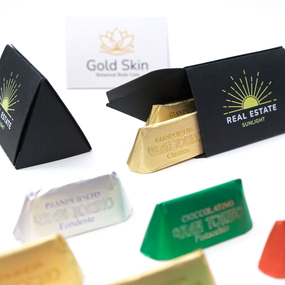 Dimensione scatola: 65x40x40 mm — Può contenere 2 o 3 gianduiotti.