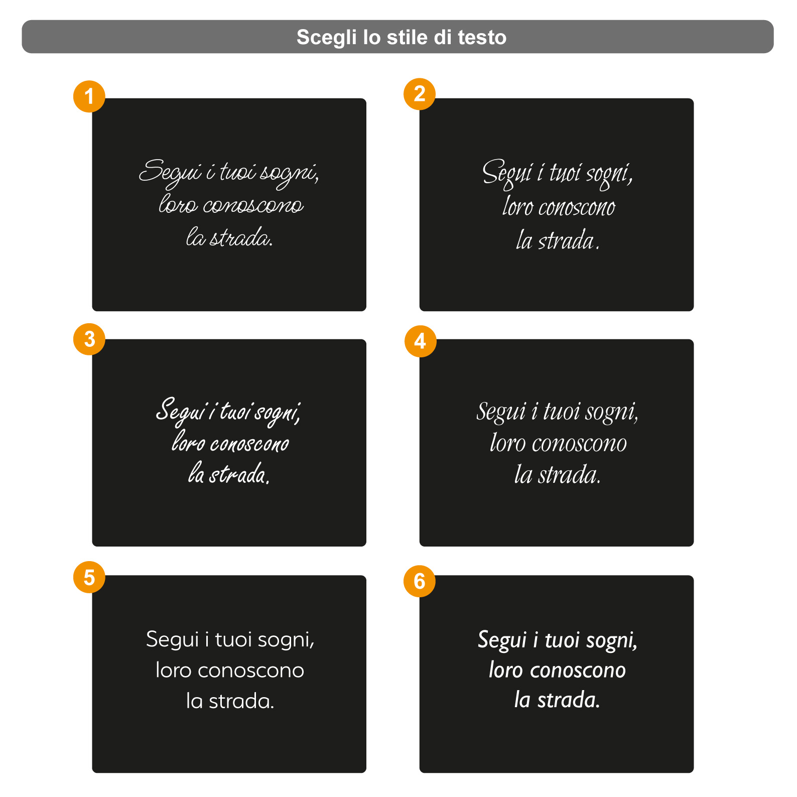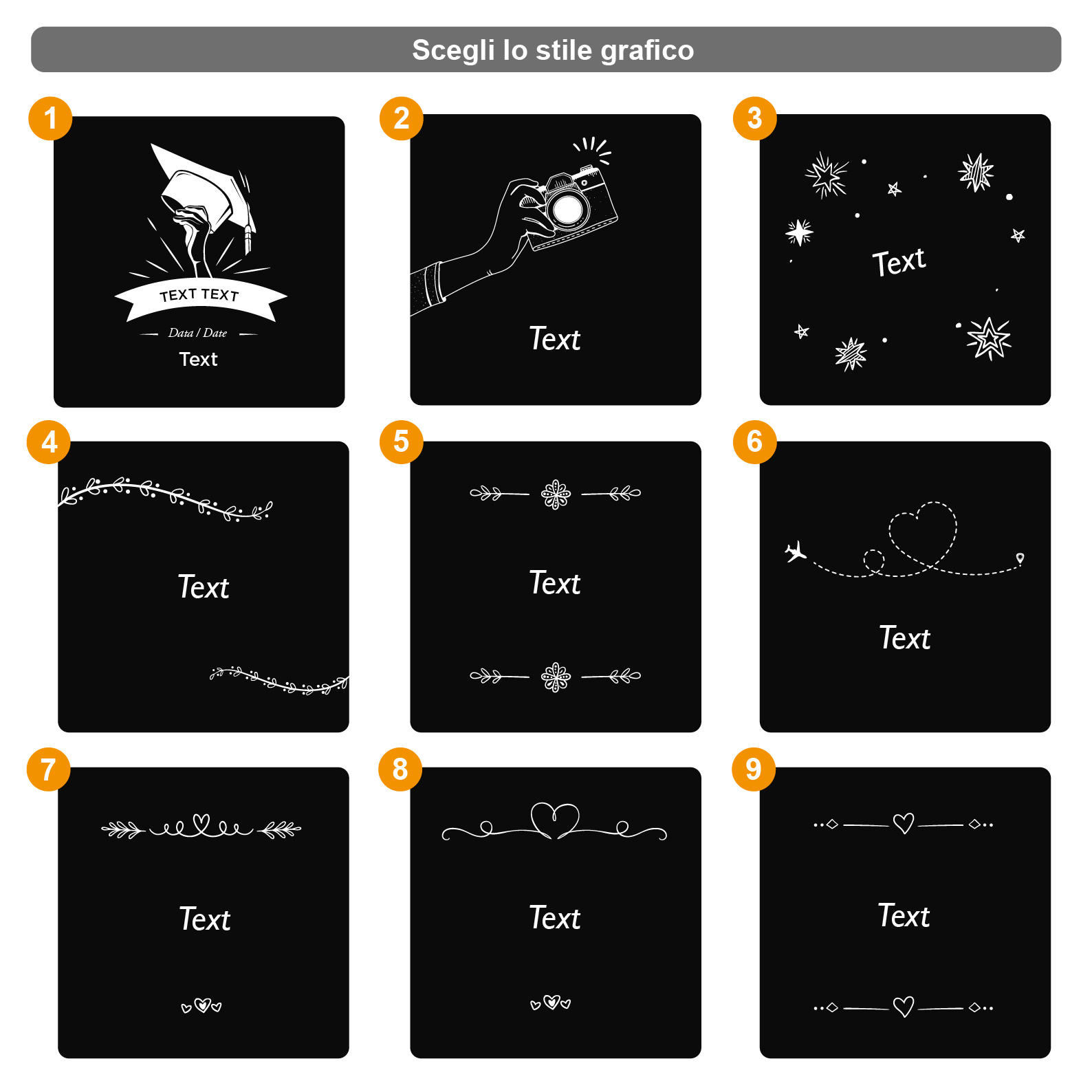 Scegli il modello grafico, lo stile di testo, pensa a una dedica e inviaci le foto da stampare via WhatsApp o E-mail.